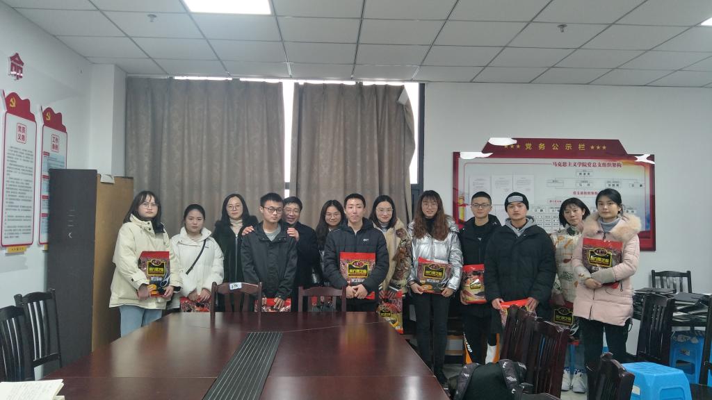 党总支副书记黄琰希望同学们用实际行动去传播爱与温暖,并对元旦节期间的安全事项进行了强调。参加会议的部分员工代表进行了发言,感谢学院领导及老师的关心。最后,学院领导和老师代表学院为每一位在场的员工发放了元旦节慰问品并合影留念。