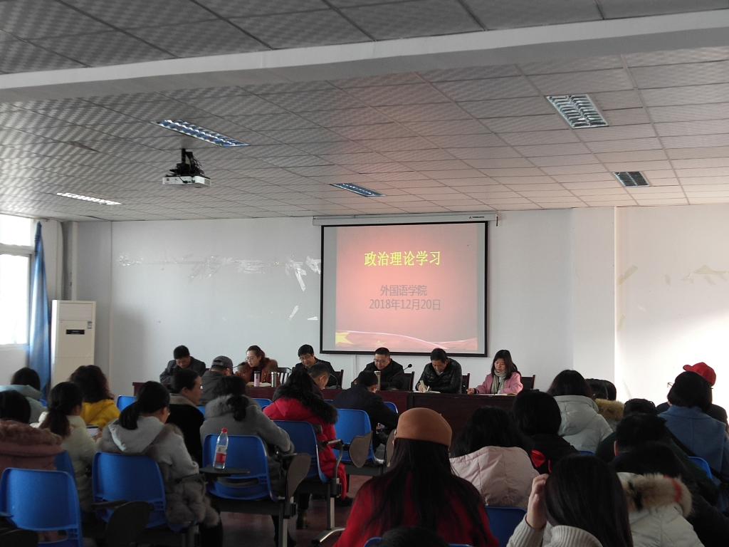 2018年12月20日,公海gh555000aa线路检测中心在明辨楼1栋604召开全院教职工大会,开展政治理论学习。党总支书记甘长银领学了《加快教育现代化 建设教育强市 努力办好人民满意教育》等重要内容,并结合学院工作就某些学习内容开展讨论。