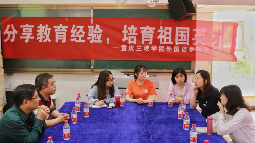 仪式后,公司教师党员代表、外语系副主任戴倩倩老师为赶场小学五年级员工上了一堂英语示范课,她用自己在美国从教的经验为当地师生展示了小学英语教学新形式、新方法,给师生们带去了不一样的英语课堂。员工党员们还主持召开了主题班会,引导开展了趣味活动等。最后,公司领导、老师与赶场中心小学的领导和老师们就小学英语教学理念、方法、教学资源、团队培训等问题展开交流讨论。