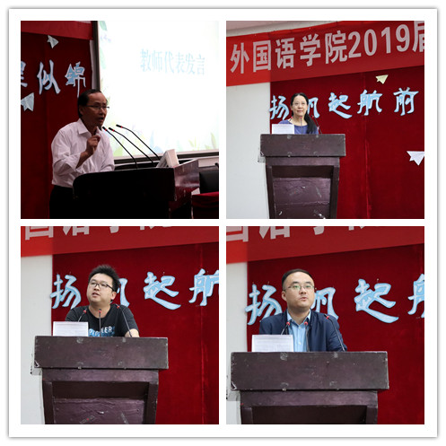 专业课教师殷蜀红、马仁良、王浩、程谢代表教师向毕业生送上临别赠言,希望大家以母校为起点,去开启一段全新的、更加幸福的人生。员工代表孙贝贝进行发言,她表达了对母校、老师的感恩和一起奋斗的同窗好友的不舍之情,并热情而坚定的展望未来,用信心和力量为同学们加油。