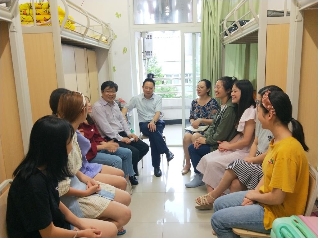 6月28日下午4:00,谭董事长、甘书记又来到桂花苑的5舍608寝室和8舍323寝室,通过走访座谈与员工开展深入地交流,全面了解员工思想动态,引领员工成长成才。在会谈中,谭董事长亲切询问了寝室每位同学的学习及生活状况,详细了解同学们在生活中遇到的困难,并结合员工所学专业提出建议,鼓励大家要好好读书,在关键时期做好人生规划。同学们也畅所欲言,充分表达了对学院专任教师的认可、对学校后勤服务的满意。同时对学校教学、寝室设施等方面提出询问和建议。针对同学们的问题,谭董事长做出一一解答,并从自身谈起,与同学们分享他的学习生活经验,鼓励同学们在提升专业能力的同时要培养有益身心的兴趣爱好,全方位提升自我,勇于实践,度过充实且有质量的大学时光,让人生更富有意义。甘书记给予同学们几点建议:专业学习必须下一番功夫,要熟能生巧并举一反三;要正确认识和评价自我,注重培养核心竞争力,善于发现自己的优点和长处,去牢牢把握人生机遇,在未来大展宏图;寝室要营造积极向上的文化和氛围,室友之间要互相激励、互相促进,一起向着更好的方向发展和努力。