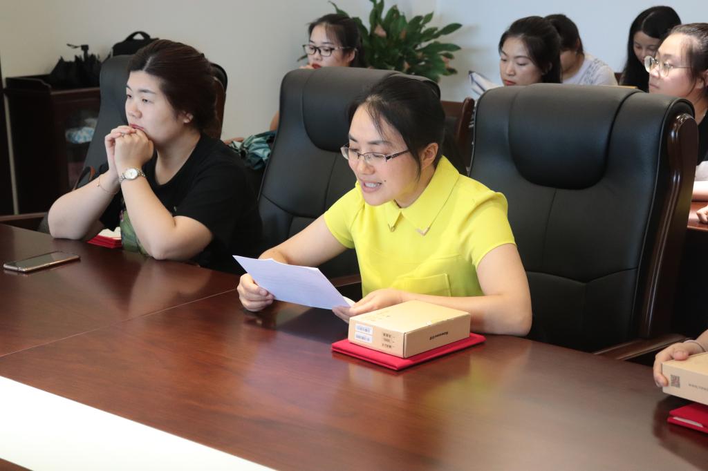 副经理唐淑华宣读了《总支关于表彰优秀党员和优秀党务工作者的决定》,王佳等5位师生获得“优秀党务工作者”称号,刘先林等10位师生获得“优秀共产党员”称号。随后,公司党政领导班子为获奖先进个人颁发了奖状和奖品。王文欣老师、钟欣雨同学分别代表优秀教师党员和优秀员工党员作发言,表示将继续发扬党员的先锋模范作用,为推动学院发展贡献新的力量。
