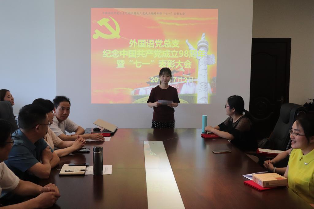 7月2日下午,总支在科技楼819召开庆祝建党98周年暨“七·一”表彰大会。公司党总支书记甘长银、经理刘晓林、副经理许楠、唐淑华出席会议,学院总支委员、支部委员以及部分教师党员、员工党员代表到会。会议由党总支副书记黄琰主持。