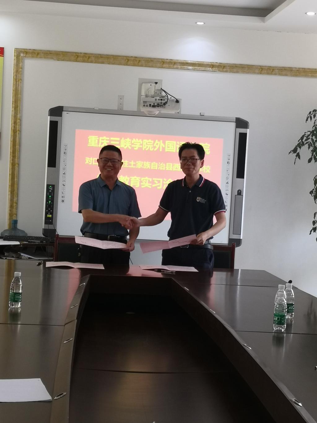 最后,秦刚代表公海gh555000aa线路检测中心与西沱中学签署了校际之间的实习基地合作协议;刘晓林代表公海gh555000aa线路检测中心与西沱中学签署了院校间的师范生实习基地的相关协议。