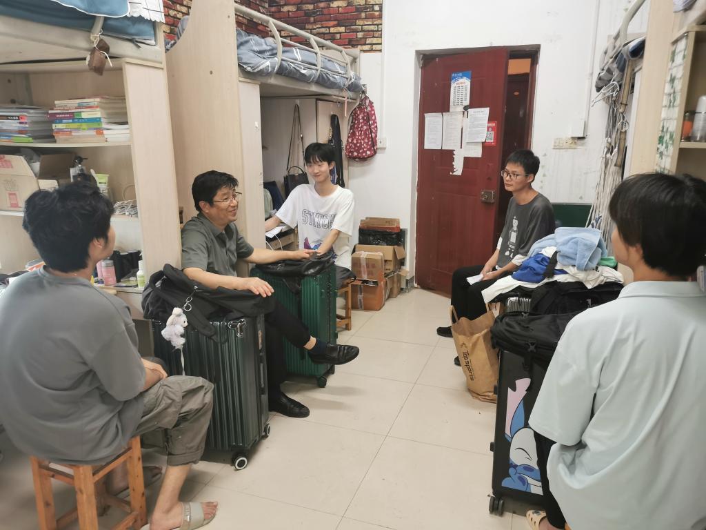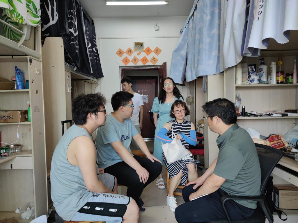 首先,甘长银一行人走访看望了延迟离校毕业生宿舍,关切询问同学们延迟离校原因、需要什么帮助,以及能否顺利毕业获得学位、离校去向等;并耐心听取毕业生对学院公司产品、管理服务方面的意见建议。