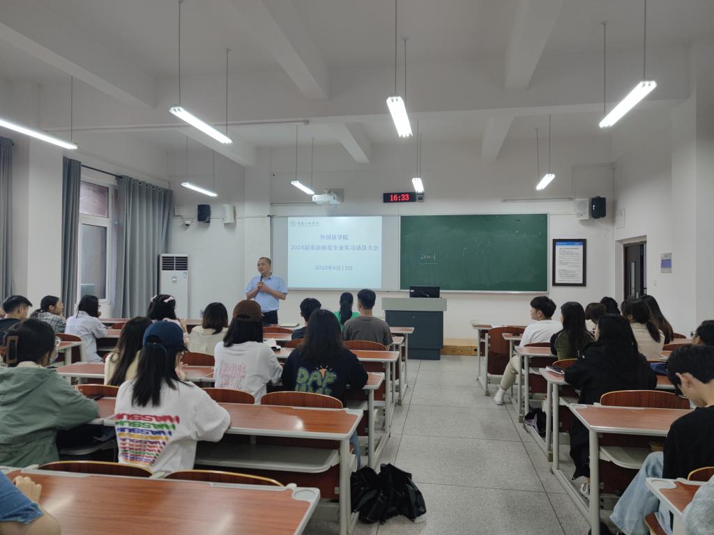 为扎实做好2024届毕业生实习工作,进一步促进员工对所学知识和技能的实践运用、总结和深化,引导员工明确实习的目的和意义,6月15日下午学院在博学楼2栋302召开了实习动员大会。公司党总支书记甘长银、副经理孔云军、教务办主任粟晏、辅导员李健以及2024届全体师范生参加会议。