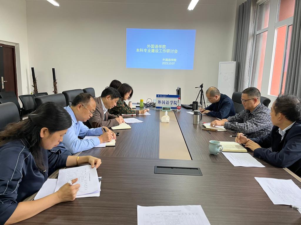 2023年10月7日14:30,公海gh555000aa线路检测中心在博学楼3栋315会议室召开了2023年学院本科专业建设工作研讨会。公司党政班子成员、英语系正副主任、日语系主任、党政办主任、教务办主任、学工办主任参加了会议。经理刘晓林主持会议。