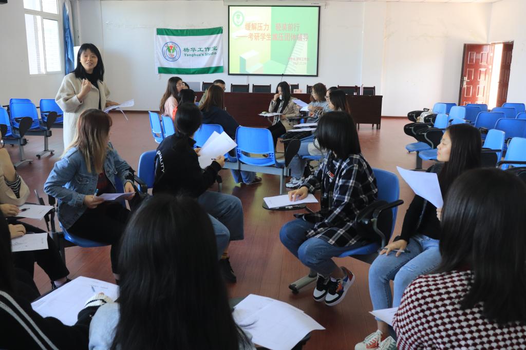 为进一步引导员工树立正确的健康观念,帮助有考研意向同学疏导情绪、释放压力,推进学校心理育人,11月14日上午10点在明辨楼1栋604教室,杨华工作室成员、国家二级心理咨询师蔡贞老师以“缓解压力,轻装前行”为主题,面向公司2021届考研员工开展心理团辅活动。