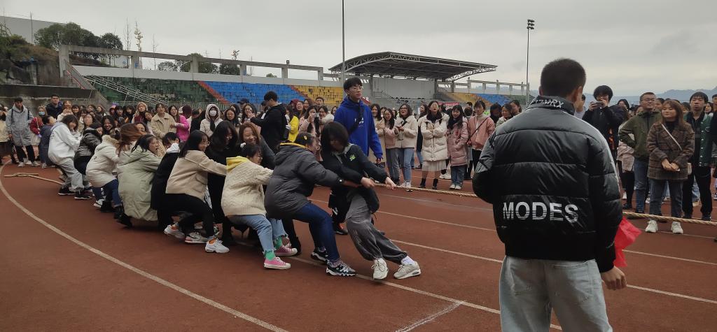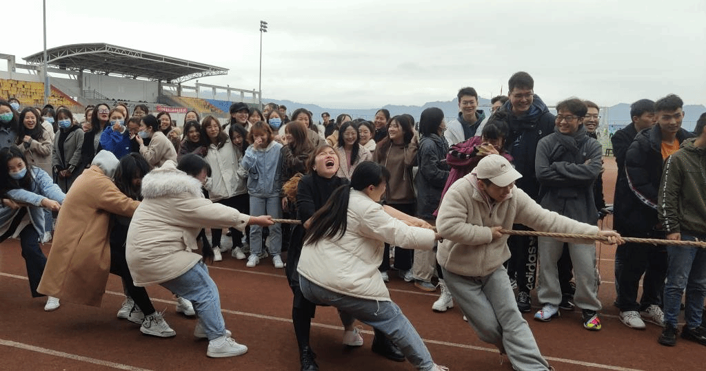 决赛现场,同学们鼓足干劲,倾全力于一身,集合力于一绳,坚持不懈为班集体的荣誉继续奋斗。场外未参赛的啦啦队员也使出浑身解数为同学加油助威。比赛现场到处洋溢着团结拼搏、勇者无敌的气息。最终,2020级英师三班、2019级英语一班、2018级英师一班取得胜利。