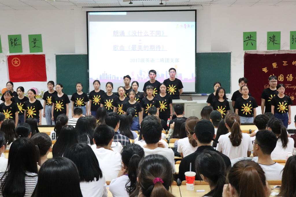 本次活动旨在呼吁广大青年员工学习并传承五四精神,面向群体为大一各班团支部。比赛分为团支部风采展示和团支部才艺展示两个环节,并从内容、形式、参与度、氛围、精神面貌、创新程度等多个方面进行考察评分。比赛中,各班团支部各显其能,充分展示其思想建设、组织建设、作风建设、纪律建设。经过各团支部精彩激烈的角逐,大赛评选出了前三甲,他们分别是日语班、英语三班和英语一班。向覃老师、任红英老为本次比赛作出点评,他们希望同学们在比赛中锻炼的不止是班级凝聚力和责任意识,更要将五四精神传承下去、弘扬出去。