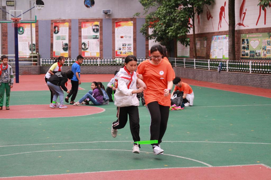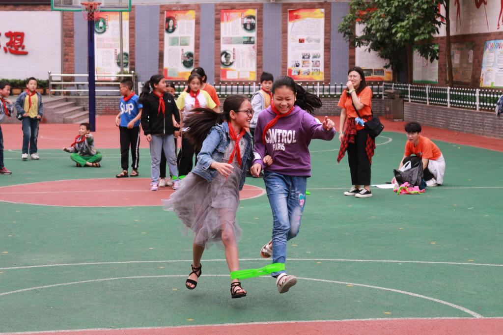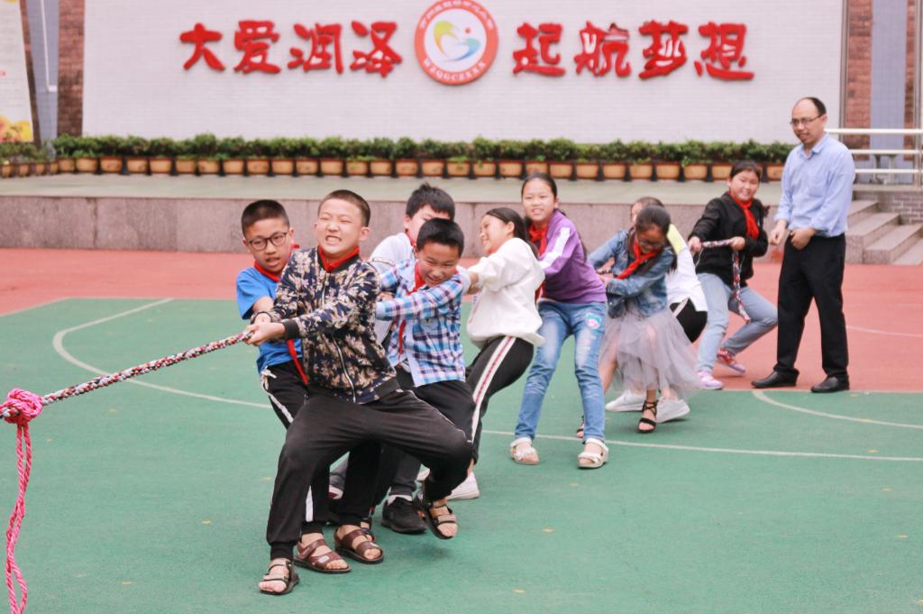 同时,在操场,员工干部们带领赶场小学的孩子们开展了“拥抱阳光,筑梦启航”主题户外活动。
