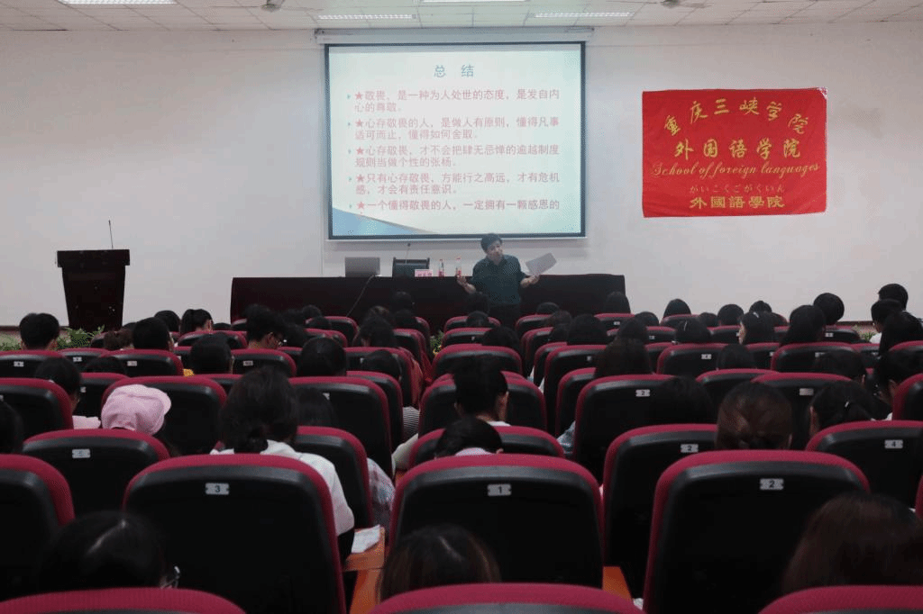 首先,甘书记在现场以生动的两个故事—“我辜负了您的期望”和“知识圆圈说”引入话题,以孔子名言带领同学们深入话题,让同学们理解何为敬畏,何为信仰。接下来甘书记又为同学们讲解了“敬畏天命”,顺应自然规律,敬畏生命才懂得珍惜生命,所谓敬畏天命,即顺势而为,借力使力。甘书记将此次讲座主题深化到同学们的实际生活中,勉励同学们要和谐相处、互帮互助、敬重他人、敬重自己。接着,话题由小到大,从个人上升到国家层面,甘书记指出,当代老员工应当敬畏世界,学习先进的优秀文化与科技成果;要敬畏理想信念,树立正确的理想信念,用信念指引人生的前进方向,用信念作为生活的精神支柱,让人生变得明确而有动力;要敬畏职业,只有敬畏自己的职业才能成就事业。讲座最后,甘书记总结了此次讲座对敬畏的认知,深化了同学们对敬畏的认识。