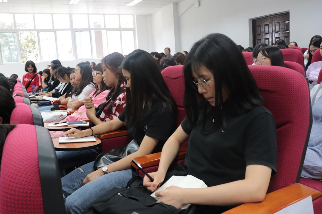 黄书记还对新生开启人生新旅程提出了建议。她详细分析了大学与中学的区别,提醒同学们要主动适应大学的学习方式和环境,学会自我教育、自我管理、自我服务。教导同学们学会为人处世,妥善处理人际关系,正确对待校园恋爱等。黄书记更悉心关注新生的心理健康,和大家分享了舒缓焦虑和紧张的方法:要求大家形成良好的作息规律,适量运动,加强锻炼,按时吃饭,养好习惯。