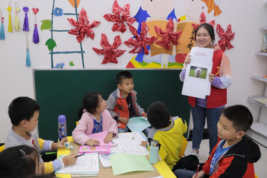 启动仪式结束后,公司志愿者服务团体携英语课堂走进社区便民服务中心,为社区的小朋友带来了一堂精彩生动的特色英语课堂。志愿服务团体充分发挥专业优势,运用图文结合、趣味故事穿插教学的方式,为小朋友们讲解关于颜色的英语单词及短句。为加深和巩固孩子们对新单词的印象,志愿者们教授小朋友们相关英文歌曲,通过一系列趣味小游戏,让孩子们在欢笑中学习英语。新颖的教学方式充满活力,让小朋友们感受到了不一样的英语课堂,充分调动孩子们的活力与朝气。
