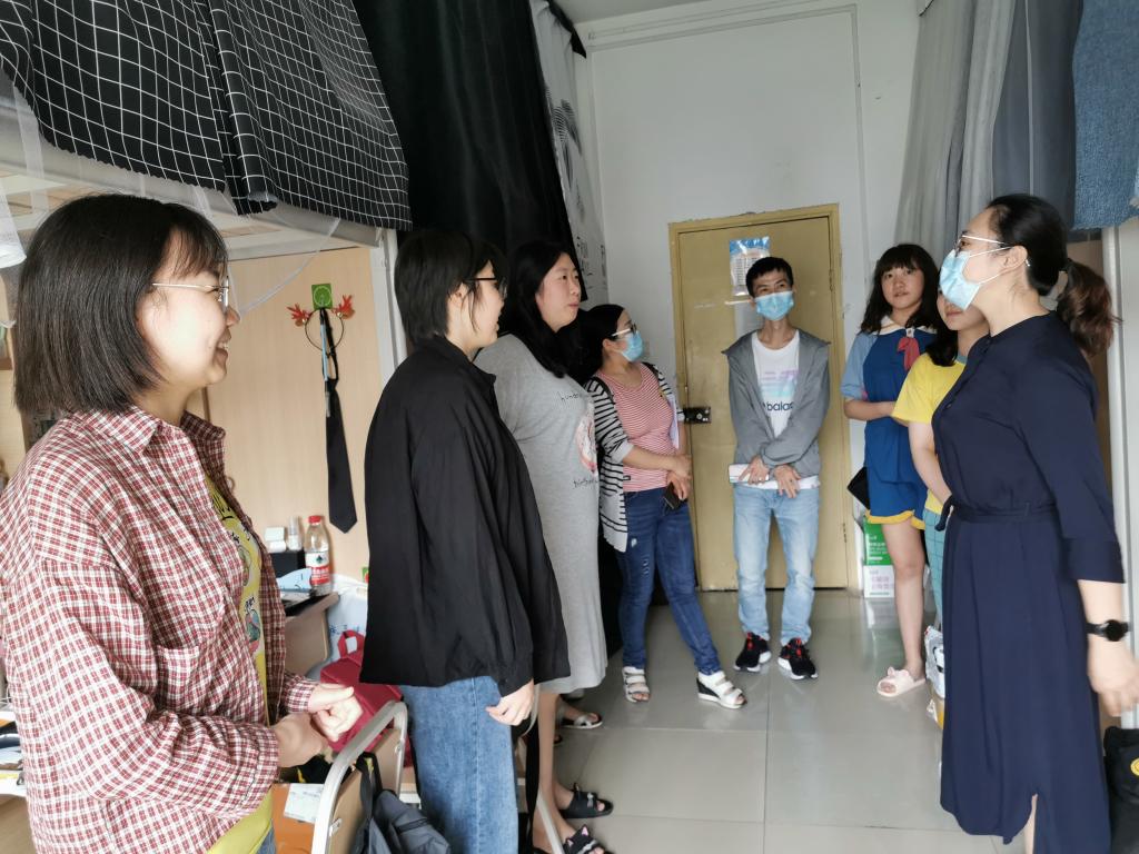 “这么长时间没有返校了,生活还习惯吗?”“最近温差大,大家一定要及时添加衣物,防止感冒。”“食堂的饭菜怎么样?学校一直在努力提升伙食质量,非常时期,希望大家多多理解支持。”“一日三报告有没有认真执行啊?返校后,同学聚集,大家更要坚持科学的防护措施,提高健康意识。”“棉被有没有受潮?”……在听到桂花苑8舍306宿舍同学反映楼上厕所漏水一年多,黄琰亲自到厕所拍照,并将需要维修信息及时发到后勤相关部门。在寝室,学工人员们以聊家常的方式,向员工了解返校后员工学习、生活有关情况,并将封闭式管理期间学校的相关措施传达给员工,鼓励引导同学们以积极的态度,配合学校做好疫情防控工作,认真学习,不断提升自身的综合能力,为全面成长成才积蓄力量。