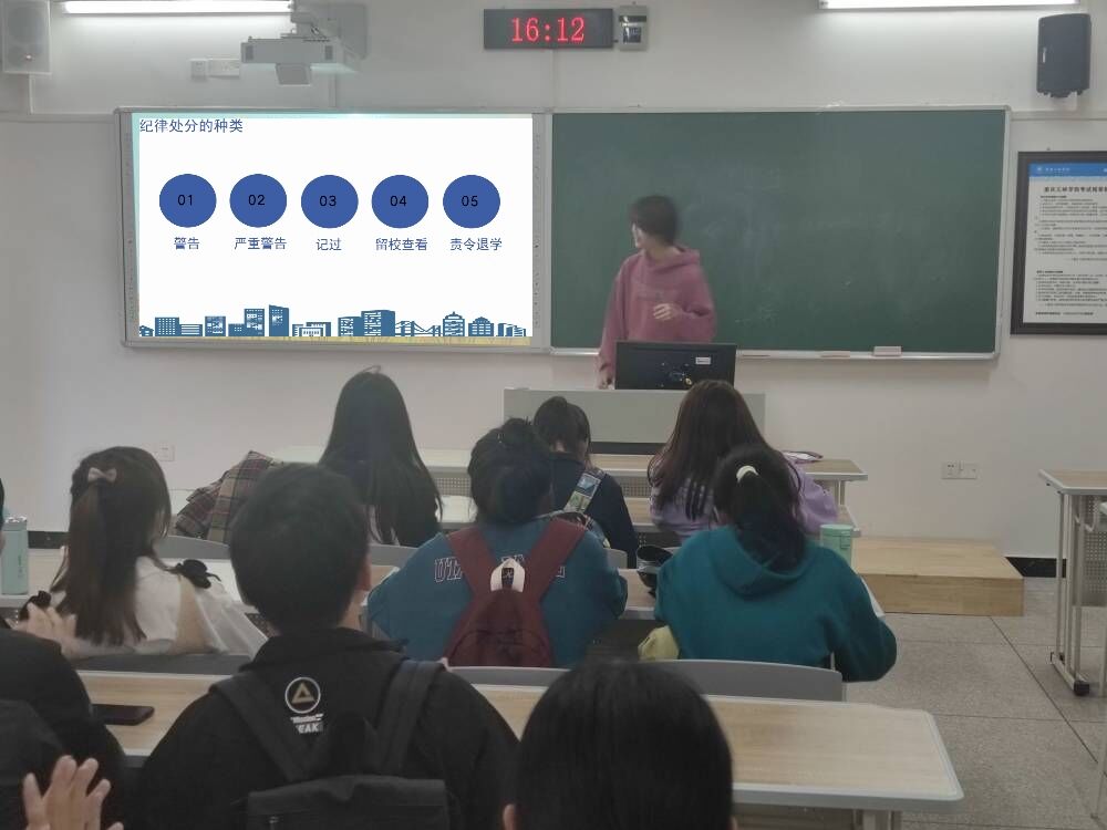 为加强校风学风建设,提升员工文明修养,自觉强化法治意识和纪律观念,4月14日下午,公司各班级在博学楼1栋开展 “遵守校规校纪,建设文明校园”的主题班会。
