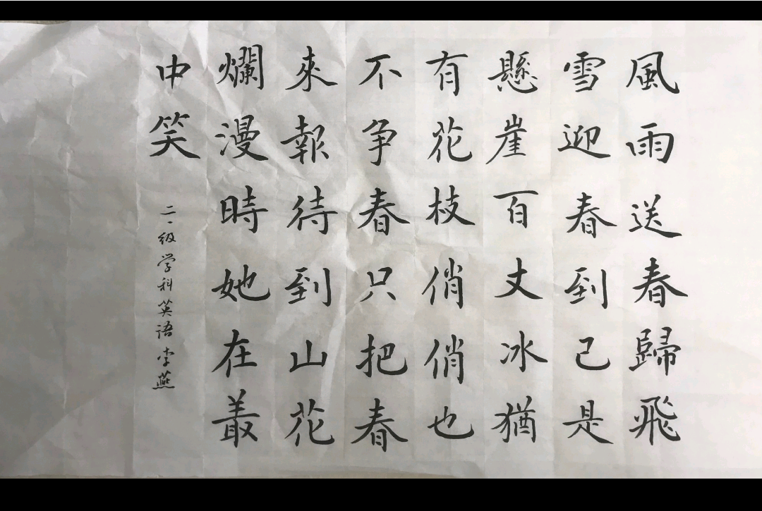本次比赛以“畅游墨海,书写新章”为主题,参赛选手通过提交钢笔、毛笔以及粉笔书写作品的方式举行。全院员工积极参赛,收到三个参赛类别作品共计120余份。经过评比,张琳茹、马瑞等3名同学获得一等奖,陈诗佳、吴高洁等8名同学获得二等奖,刘小林、张紫云等10名同学获得三等奖。