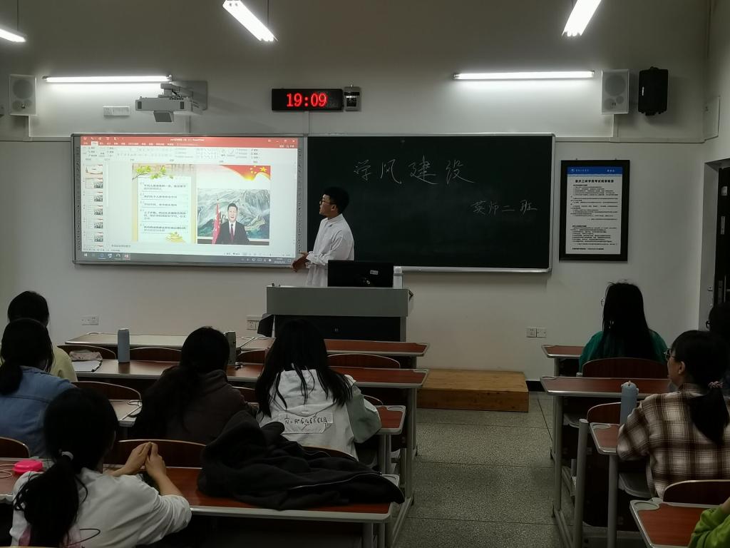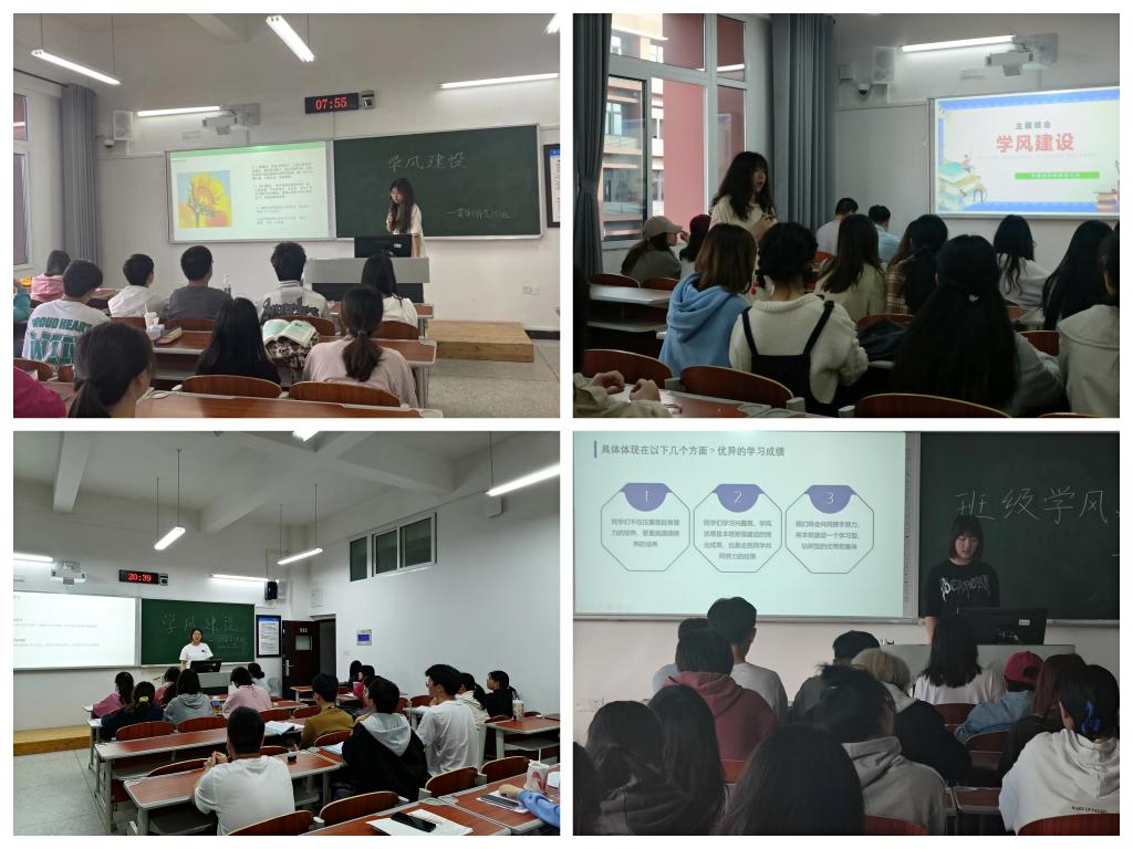 在年级辅导员、班长和学委的带领下,各班主要围绕班级学风出现的问题、班级学风建设的重要意义、如何进行班级学风建设、加强学风建设的方法和学风建设反思等方面开展主题活动。其中,2021级英语(师范)2班,重点学习《习近平讲给老员工的54句话》,以习近平总书记对老员工的嘱托,引导同学们明确学习目的,提高学习兴趣,珍惜学习时光,养成良好习惯,树立远大目标,不忘使命和担当;2021级英语2班打造了“营造浓厚学风四部曲”,并向班级全体同学发出“共建优良学风”的倡议,提出了“六先六后”学习法,鼓励同学们找到一条适合自己的学习道路,向自己的目标奋进,不负时代,不负青春。