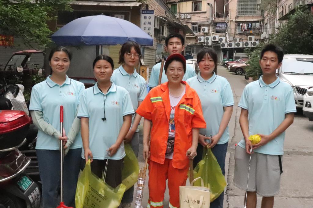 当天下午,宣讲团志愿者还来到居民区,与社区工作人员一起清除杂草杂物,清理乱贴乱画,捡拾烟头杂物,并向小区居民讲解“垃圾分类”的相关知识,助力提升社区垃圾分类准确率。在志愿者两个多小时的努力下,小区环境面貌焕然一新,小区居民也纷纷对志愿者们表示赞许。