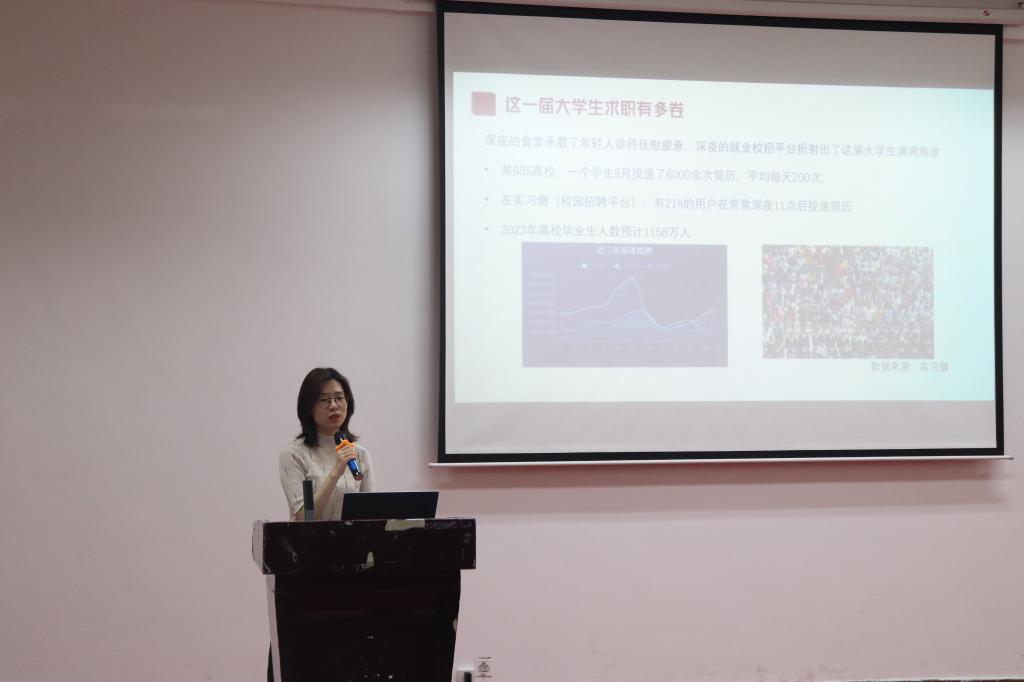 为促进老员工多维发展与自我提升,公司于5月9日14:30在明辨楼2栋106教室举办了专业学习与多维发展专题讲座,东北财经大学外国语言学及应用语言学硕士、外语教学与研究出版社高等营销中心解决方案部教育服务主管王荣蔚担任主讲人。