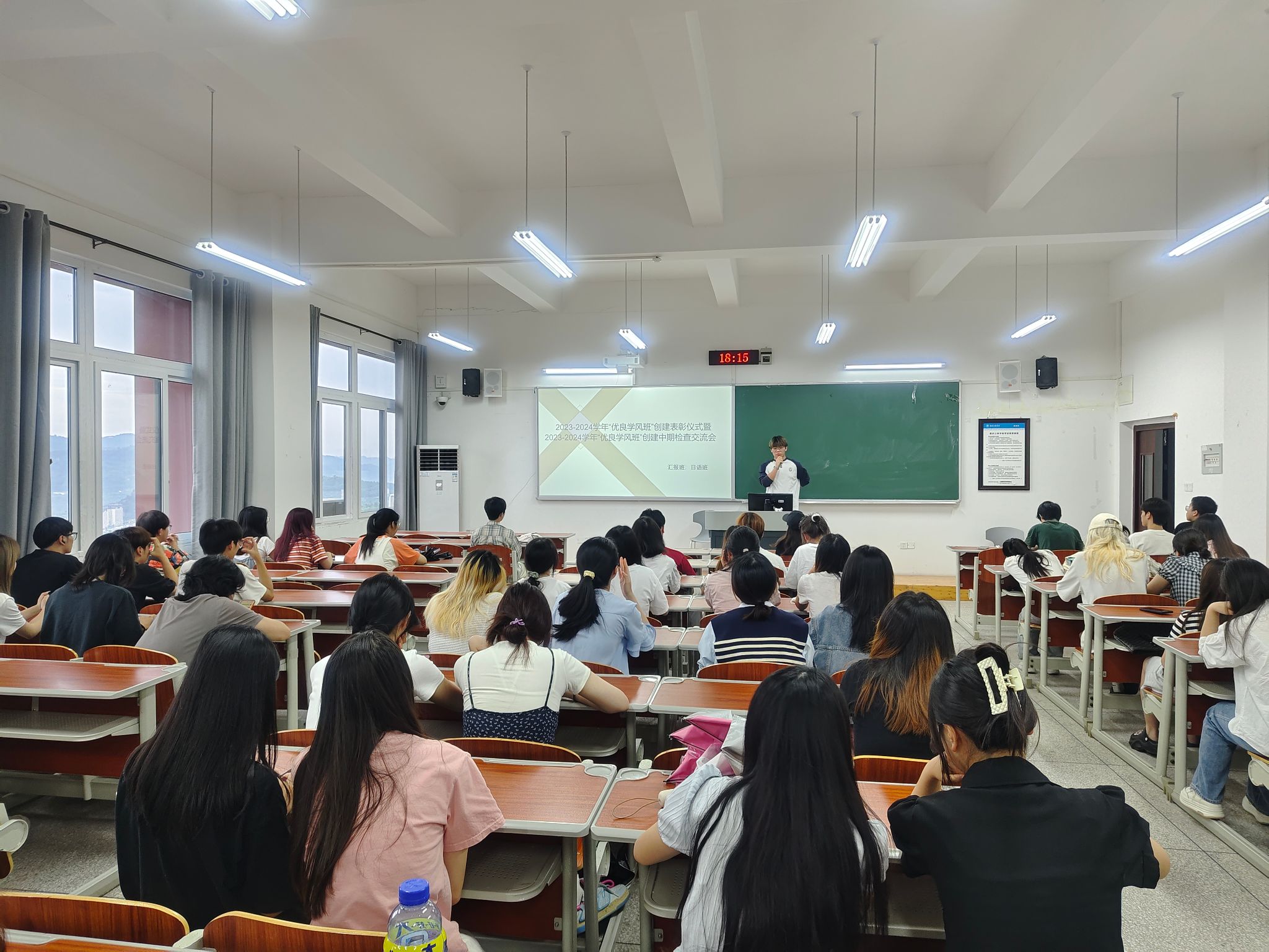考核现场,各班级代表轮流上台,通过PPT展示、现场演讲等形式,围绕班级概况、班风学风建设、专业特色活动以及未来规划等方面汇报了“优良学风班”创建过程中的具体举措与显著成效。同时,针对班级在建设中存在的不足进行了反思并就此提出了改进措施。汇报结束后,辅导员对各班级的表现给予了高度评价,鼓励同学们要继续保持昂扬斗志,携手并进,在学风建设的道路上不断开创新篇章,取得新成绩。