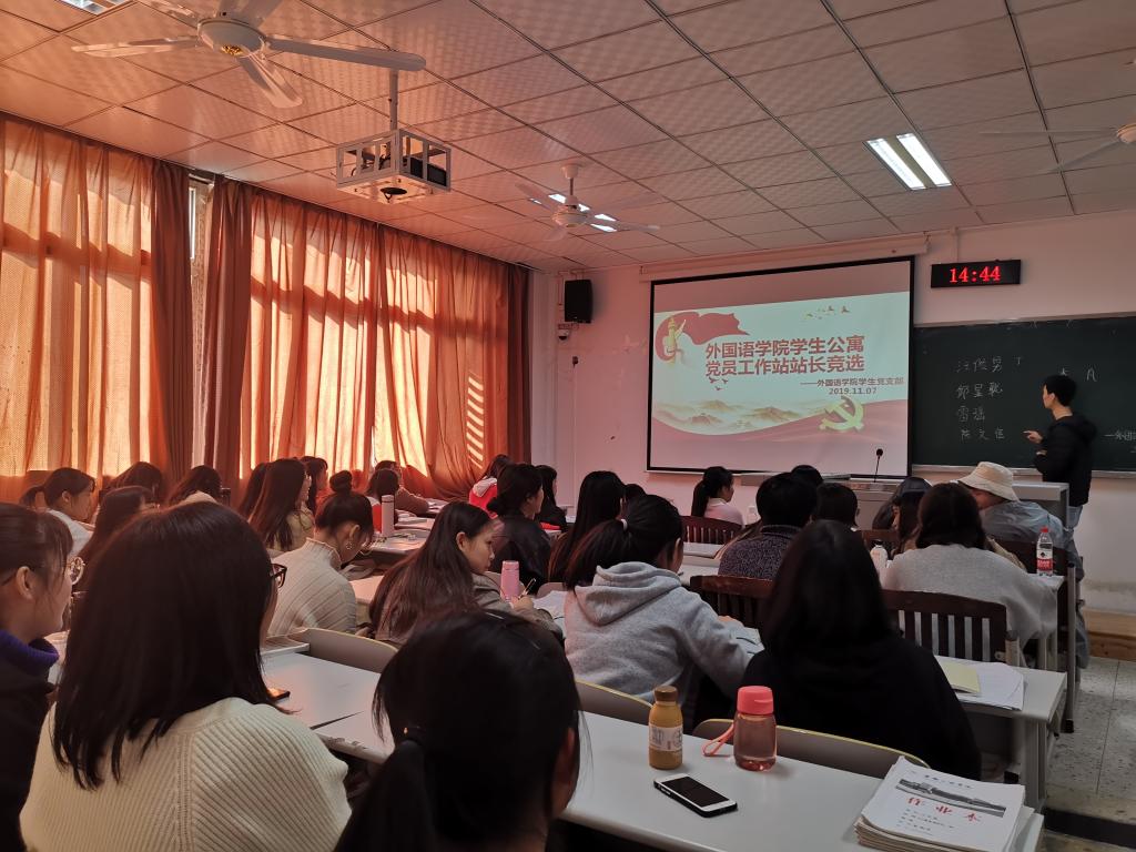 11月7日下午,总支员工支部在明辨楼1栋208开展员工公寓党员工作站站长竞选,参加本次活动的有员工二支部书记姚小辉、全体员工党员。