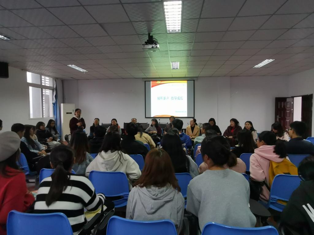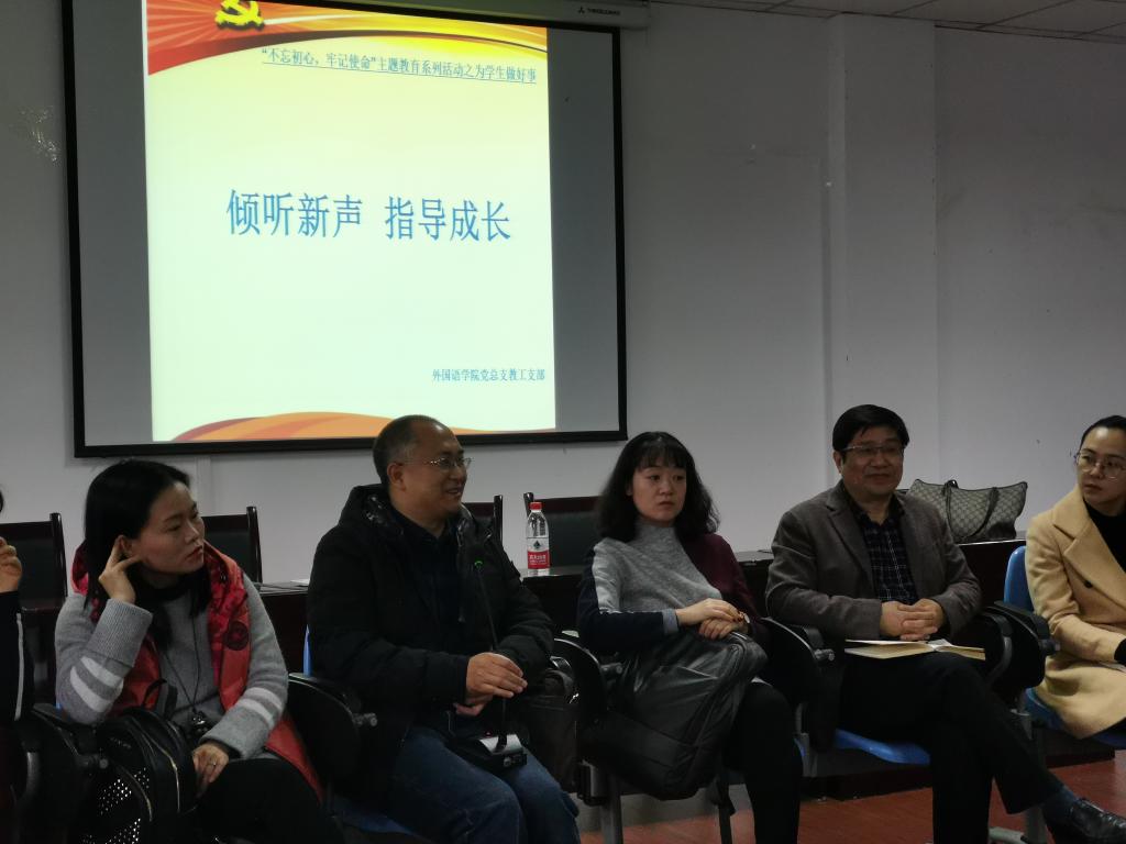 为全面推动“不忘初心、牢记使命”主题教育往深里走、往实里做,11月11日下午,公司党总支教工支部开展“倾听心声、指导成长”师生交流座谈会,专题解决新生在学习上的疑惑和困难。会议由党总支书记甘长银主持,教工支部党员教师与2019级各班员工代表参会。
