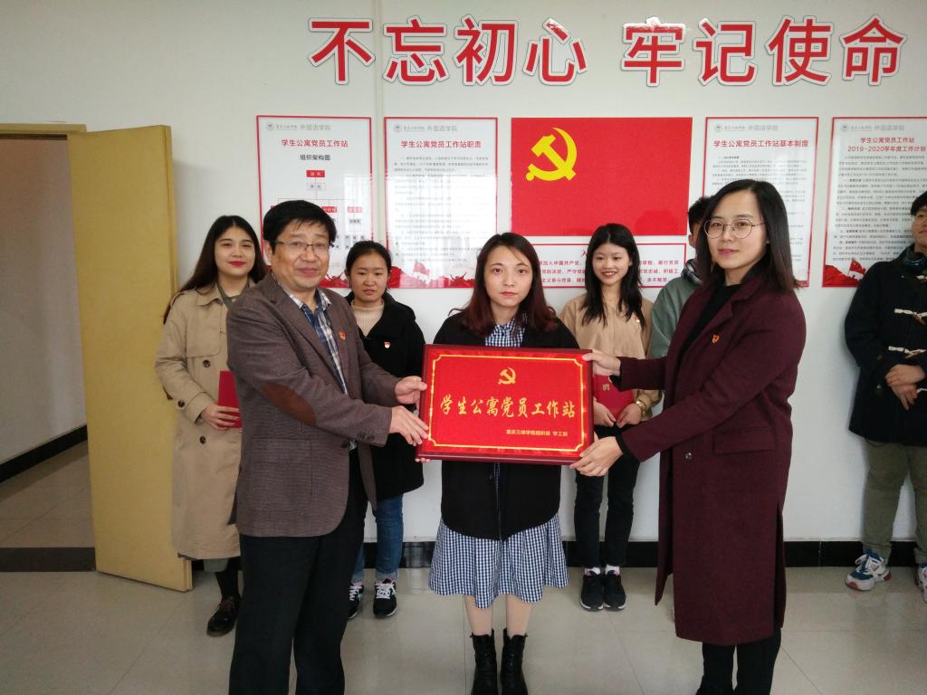 活动伊始,甘书记为员工公寓党员工作站站长、分站长颁发聘书。随后,甘书记向工作站站长授牌并讲话。甘书记指出,员工公寓党员工作站的设立为广老员工党员同志搭建了“树形象、展才华、做标兵”的平台,希望同志们充分彰显党员的光辉形象,努力发挥党员的先进性作用,着力践行党的宗旨,自觉弘扬社会主义核心价值观,把党的声音传播到群众中去,将社会正能量传递给身边的人。同时,自觉接受身边群众的监督,不断完善工作,把工作站越办越好。黄书记要求全体员工党员以此次授牌仪式为契机,带头勤奋学习、服务同学、从我做起,努力创建“学习氛围浓厚、生活习惯健康、卫生环境优雅”的良好寝室风气,切实发挥党员的表率作用。活动最后,黄书记带领全体党员重温入党誓词。