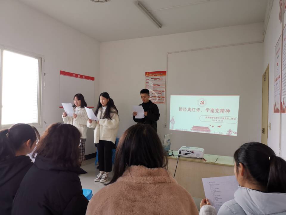 活动中,各小组声情并茂地朗诵了《可爱的中国》、《我有一个强大的祖国》、《红色的十月》、《赞美党的歌》等红色经典诗歌,歌颂中国共产党,歌颂伟大的祖国。各小组的朗诵感情饱满,激情澎湃,带领在场同学穿越时空,回顾建党历史。