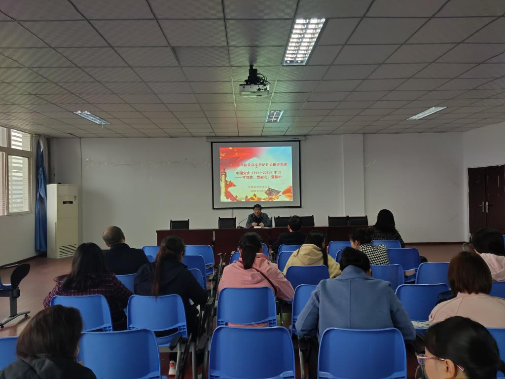 党总支书记甘长银以“学党史、悟初心、强信心”为主题,围绕为什么要学习党的历史、从党的历史中学习什么、怎样学习党的历史三个方面进行了深刻阐述。党总支副书记黄琰以“知史爱党、知史爱国”为主题,从历史传统、关键节点、必然性、学习效果四个不同维度深刻阐述了党史学习教育的重要性和必要性。教工、员工各党支部书记分别以“中国共产党100年历程(1921-2021)与学习党史的意义”,“学党史、 颂党恩、 跟党走”,“学党史、 悟思想、 勇创新”,“坚定信念跟党走、不忘初心勇奋斗”,“牢记初心使命、走好新时代长征路”为主题面向各支部党员、积极分子讲党课,帮助全公司党员进一步认识到重视学习党史、善于从历史经验中汲取开拓前进的智慧和力量是补强新时代党员精神之“钙”的重要途径。
