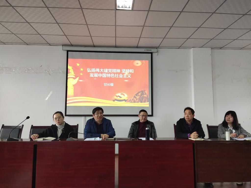 会议第二阶段是听取党课。甘长银以“弘扬伟大建党精神坚持和发展中国特色社会主义”为题讲授党课。甘长银从精神对于个体和对于一个国家、一个民族、一个政党的重要性出发,介绍了中国共产党百年奋斗历程中形成的伟大精神、构筑的精神体系,以及习总书记概括提出的伟大建党精神;分析了伟大建党精神的历史和现实意义、当代价值等;并介绍了为什么要弘扬伟大建党精神和怎样弘扬伟大建党精神。最后,甘长银以“弘扬伟大建党精神,奋进新征程”作为结语,号召大家坚定理想信念,不断奋勇前进,为全面建成社会主义现代化强国的第二个百年奋斗目标而努力工作。
