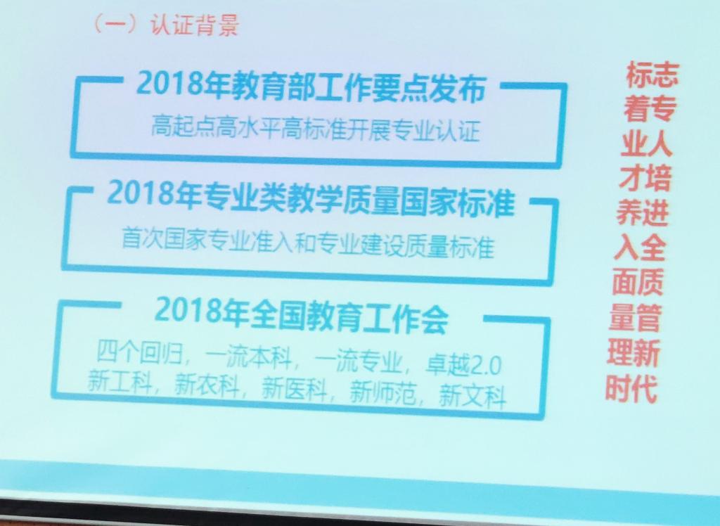 专家们从认证的指导思想、认证理念、认证原则、认证体系、认证标准、认证程序及认证结果运用阐释如何认识认证,如何理解“员工中心(SC:Student-Centered)、产出导向(OBE:Outcome-based Education)、持续改进(CQI:Continuous Quality Improvement)”三大理念,如何准备认证,培养方案修订的三大关键(培养目标、课程体系及毕业要求)等关键环节以及三大产出评价的体制机制保障;再到自评报告的撰写、支撑材料的准备、专家考察流程等认证准备工作,强调专业认证的五个关键字——“说、做、评、改、证”,运用典型的案例分析作了精彩的分享。