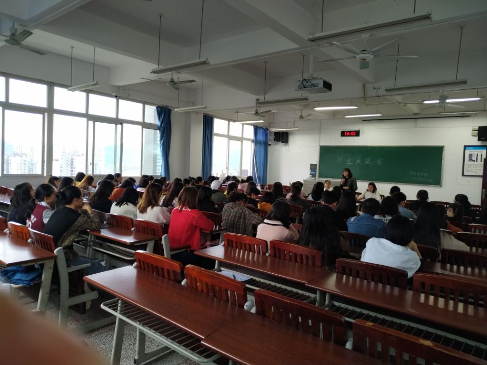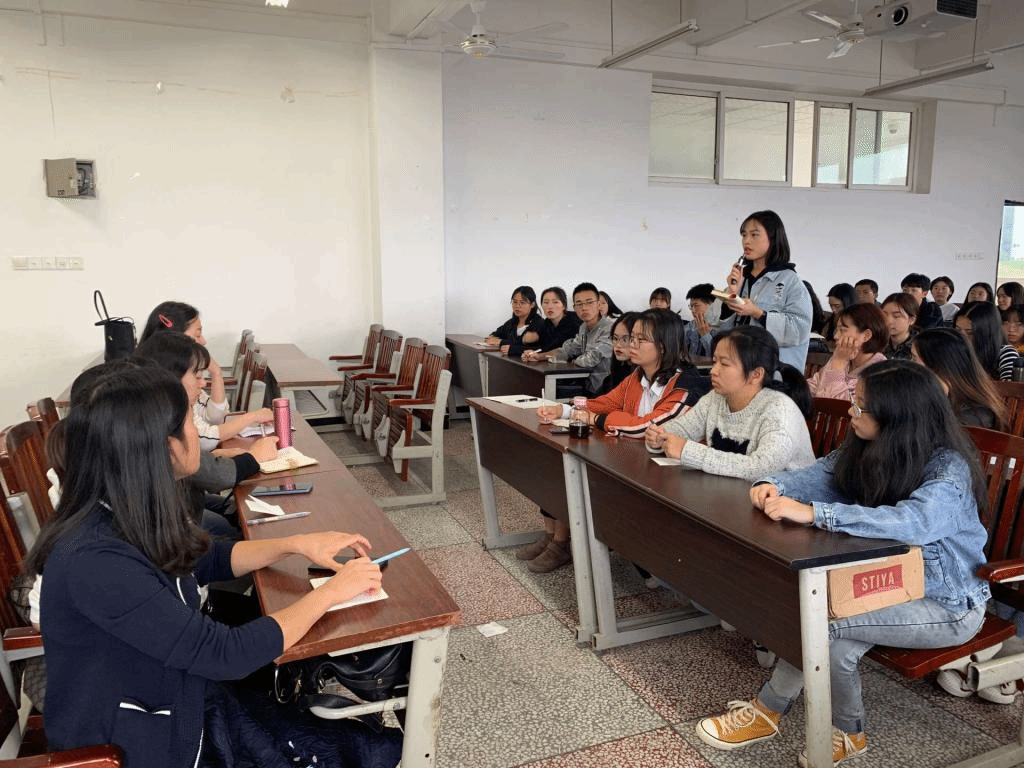 2019年10月24日下午3:50,英语系在明辨楼一教401教室召开了本学期例行的员工座谈会。英语系各班班长、学习委员以及员工代表,英语系系主任乔春华、副主任戴倩倩,学院教务助理肖祎,学院学工办主任杨华参加了本次员工座谈会。